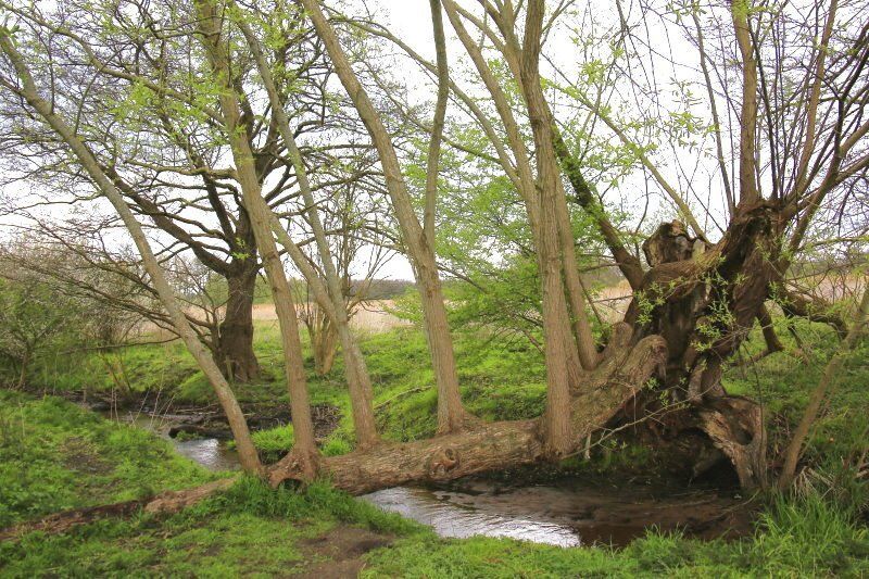Da hat die Natur sich selbst geholfen und gleich noch eine Brücke über den Hummelbeck gebaut. Ein besonderes Naturerlebnis im Auetal in der Nähe der Schutzhütte am Daudiecker Weg.